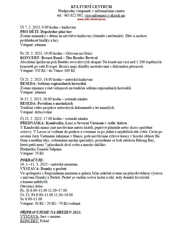 Kulturní akce u nás i na okolí - únor 2023