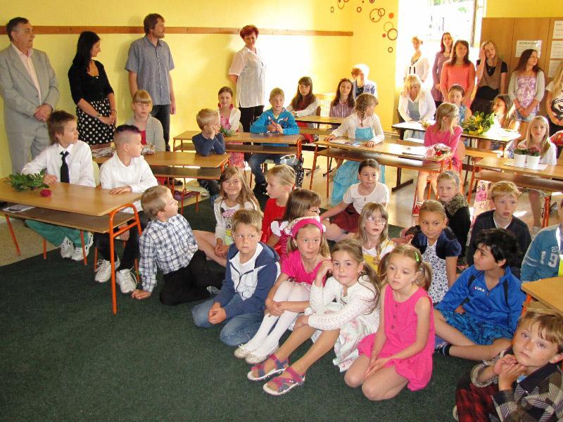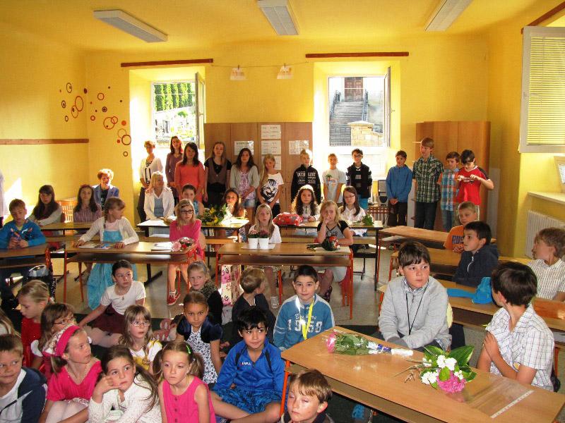 Poslední školní den v Nekořské škole - rozdání vysvědčení, kytka pro učitele, rozloučení s páťáky....