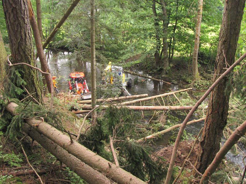 Od pondělí 13. července začali pracovníci Povodí Labe odstraňovat stromy spadlé do koryta Divoké Orlice a porážet poškozené břehové stromy. A i v obecních lesích začalo odstraňování stromů spadaných přes cestu kolem Malé přehrady, po které vede cyklotrasa i turistická stezka. Bude to však trvat ještě hodně dlouho.....