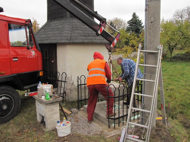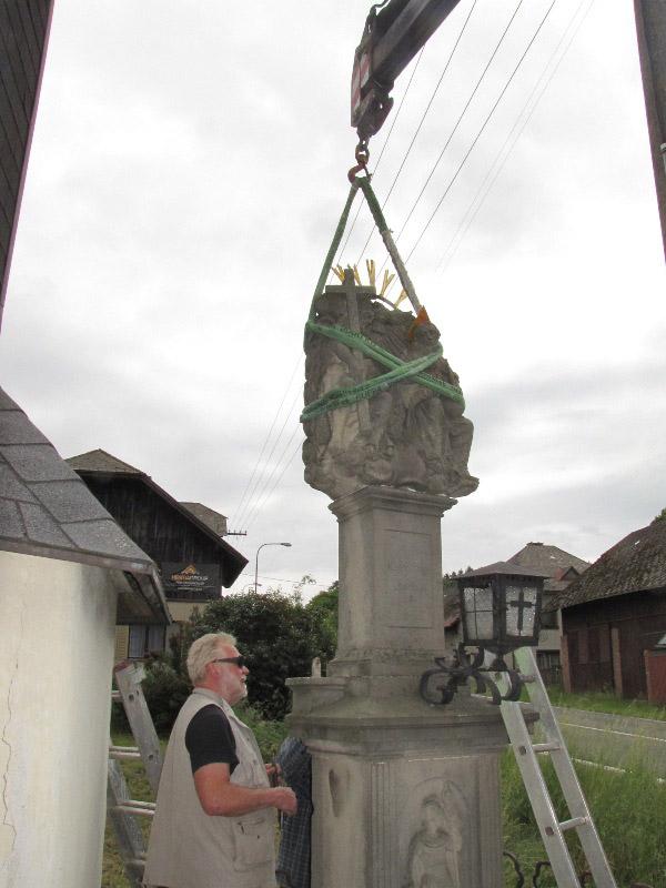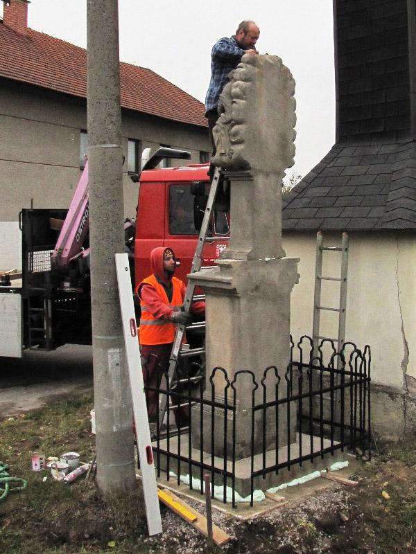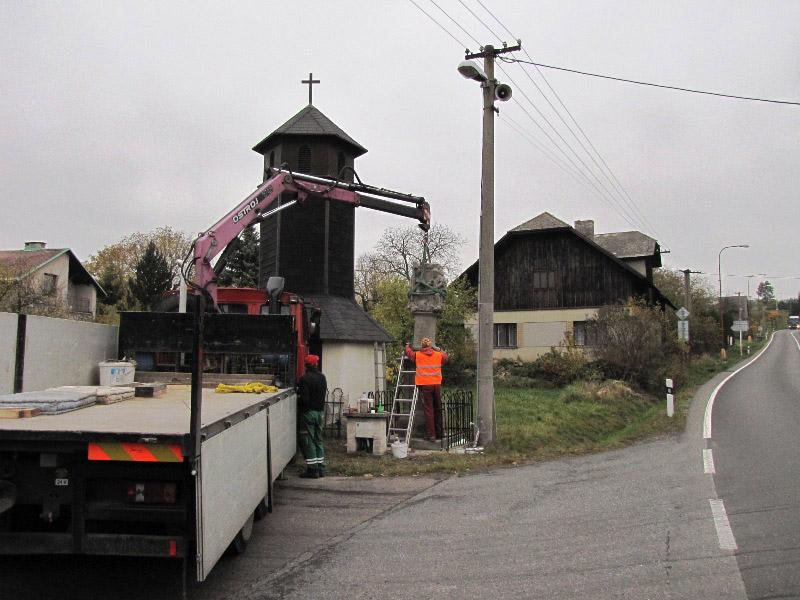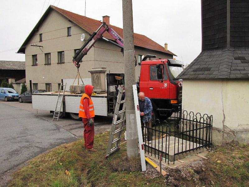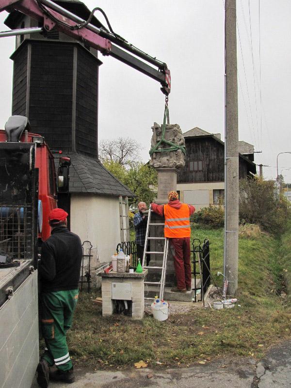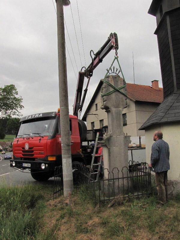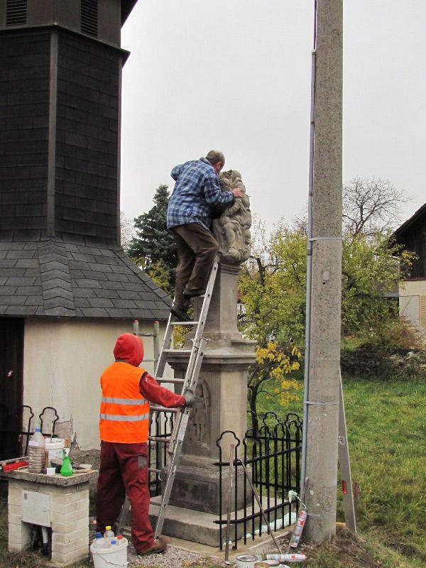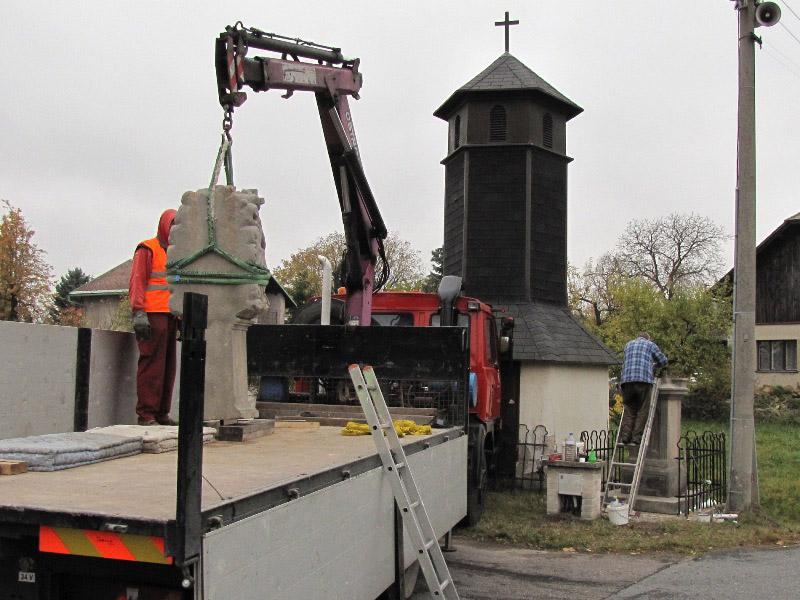 Památkou, která letos změnila svůj vzhled, byla socha Nejsv. Trojice na Bredůvce. Zde si dovolím uvést malou kuriozitu. Asi měsíc poté, co byla celá rozebrána a restaurátory odvezena do jejich ateliéru k opravě a konzervaci, se ozval telefon, že na Bredůvce asi došlo ke zločinu – odcizení sochy od zvoničky. Uklidnilo jej, že „odcizení“ provedli restaurátoři. A na pár fotografiích ukazujeme, jak „zloději“ sochu odvážejí i vracejí opravenou zpět. Na tuto opravu jsme čerpali dotaci 50.000,- z grantu Program podpory stavební obnovy a restaurování kulturních památek a drobných objektů památkového charakteru v Pardubickém kraji...