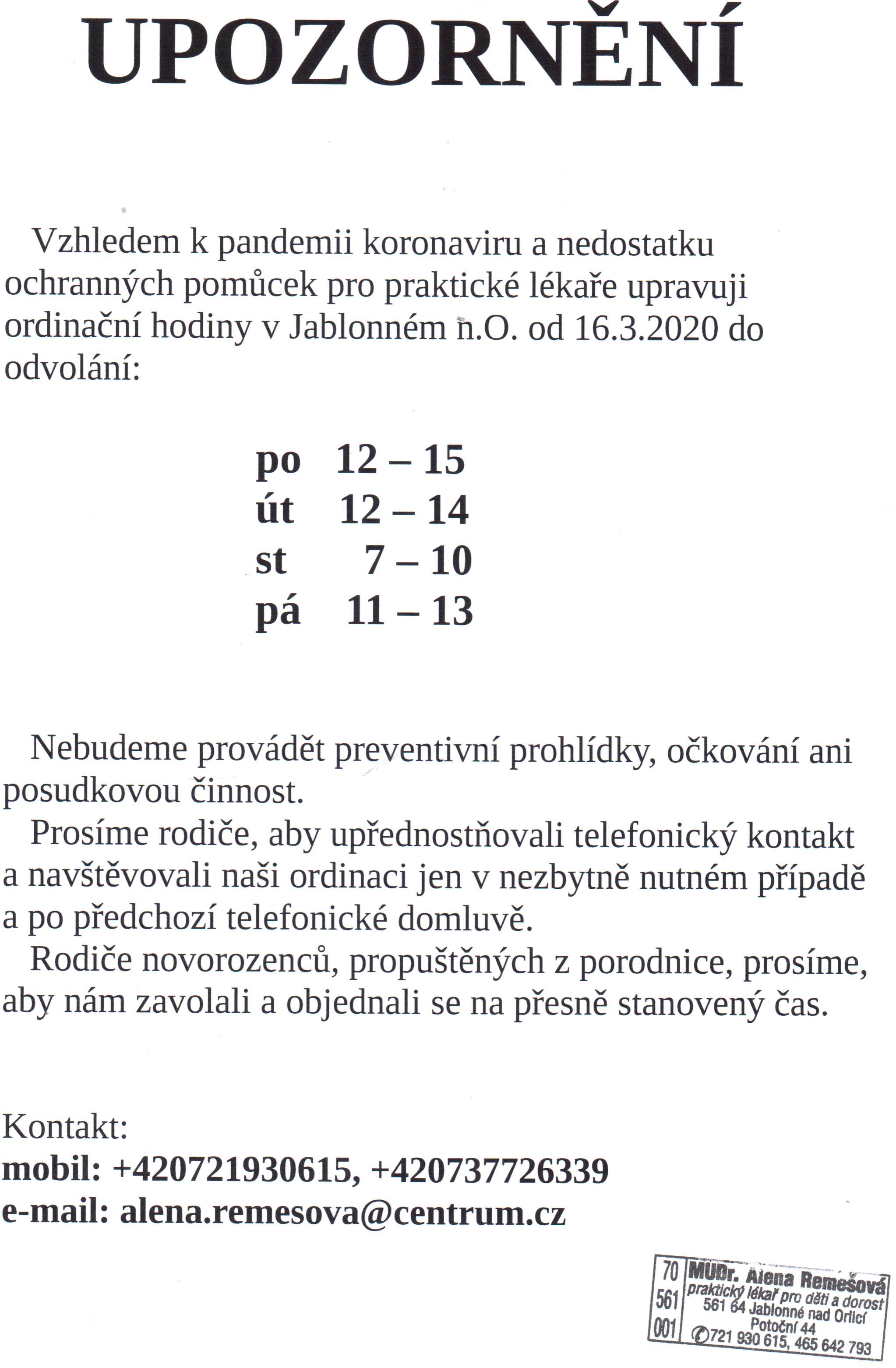 Omezení ord. doby Jablonné n.O.