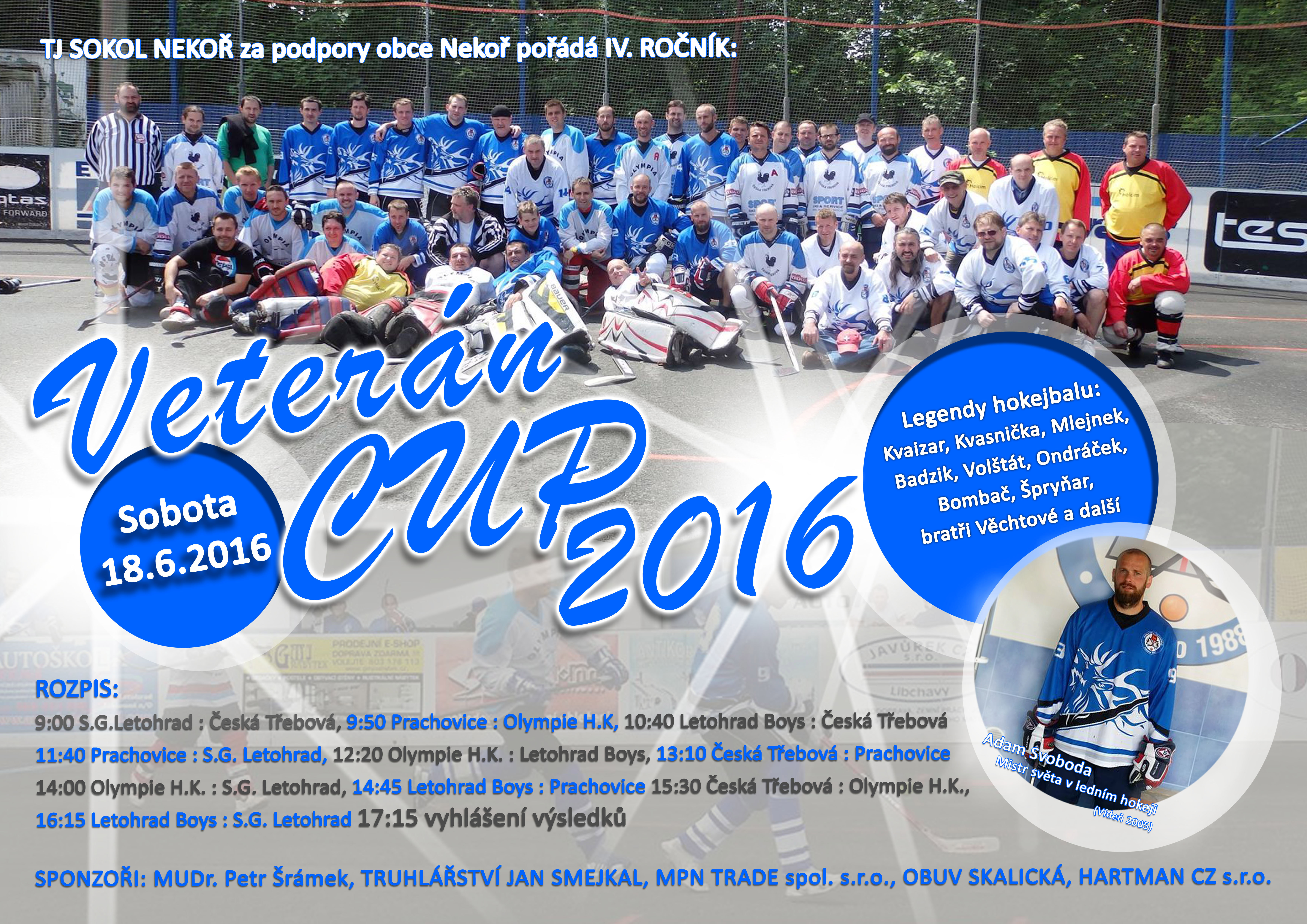 - TJ Sokol nekoř jako spolupořadatel zve na Turnaj veteránů v hokejbale – sobota 18.6.2016 od 9,00 na zimním stadionu CVAN v Nekoři – přislíbena účast hokejového mistra světa Adama Svobody