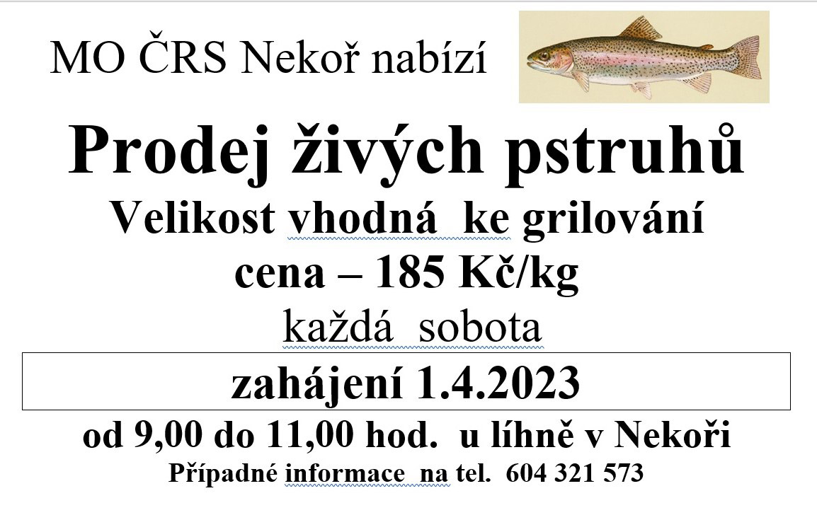 - každkou sobotu od 9 do 11 hodin u nekořské líhně - poprvé již tutu sobotu 1.4 2023