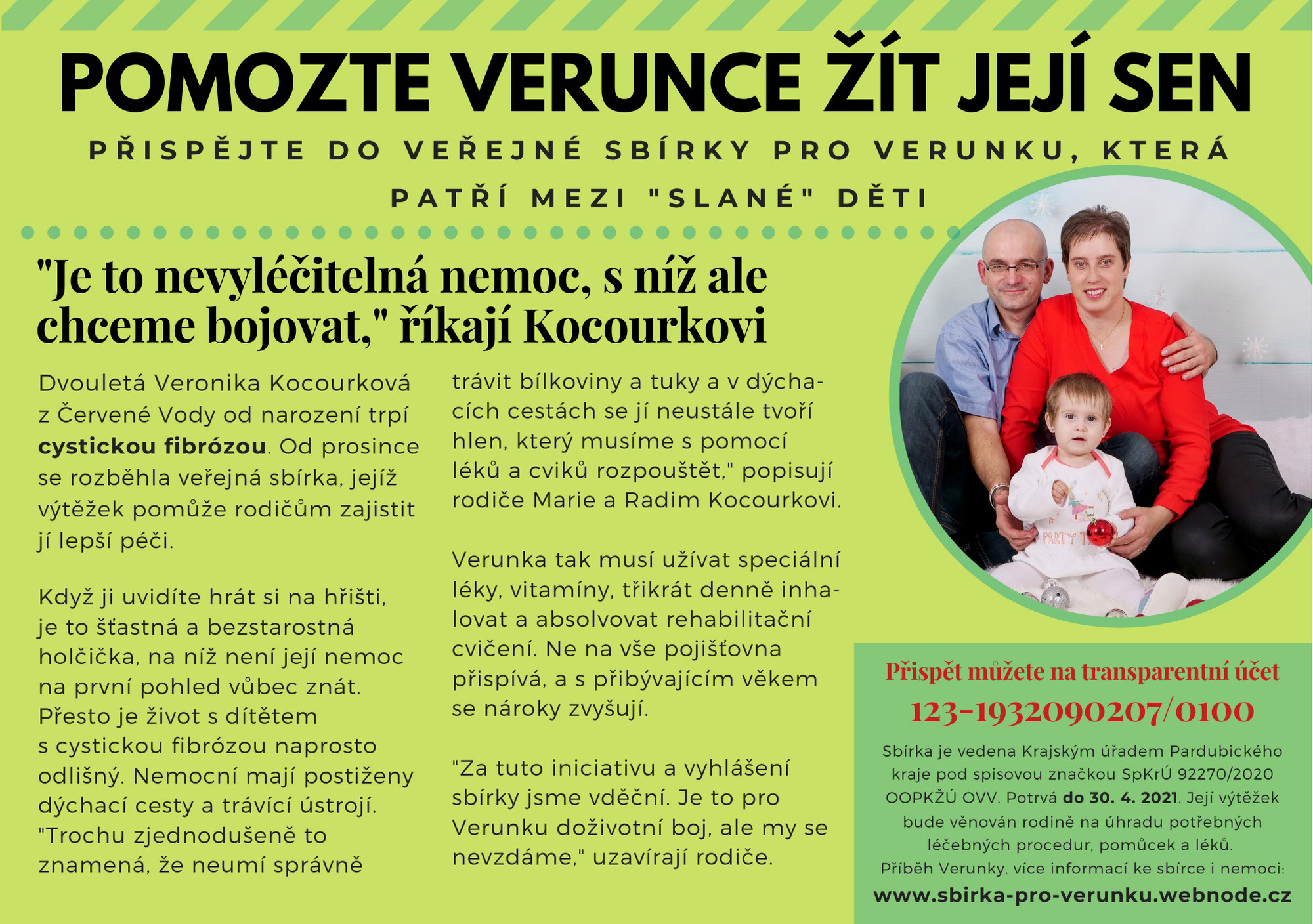 Na základě požádání vedení firmy INTERCOLOR Červená voda a předsedy sdružení obcí ORLICKO uveřejňujeme infmormace o SBÍRCE PRO VERUNKU