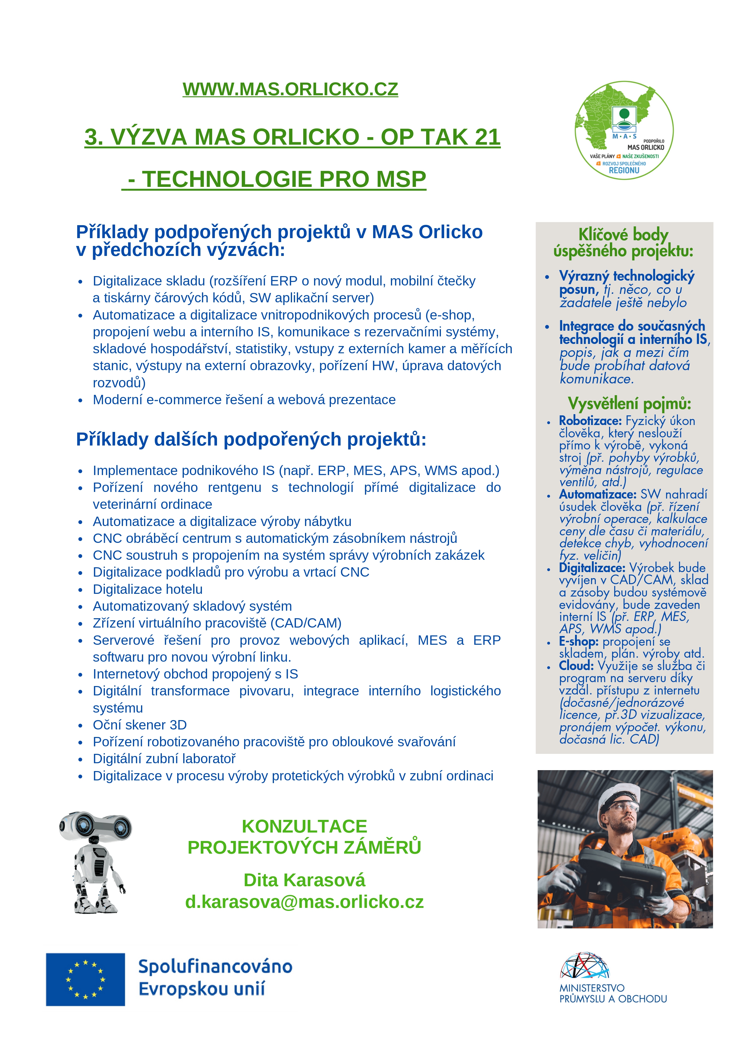 3. výzva MAS ORLICKO - OP TAK 21 - Technologie pro MSP