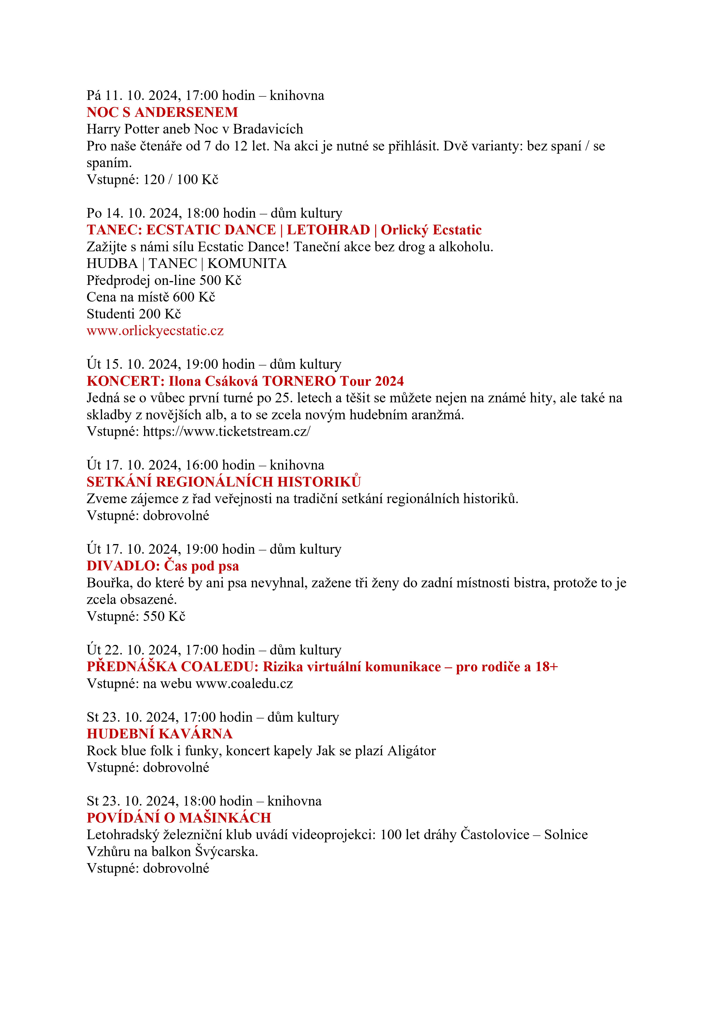 Kulturní akce u nás i v okolí říjen