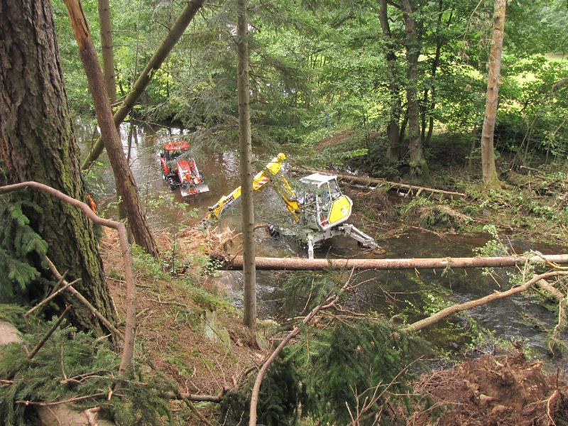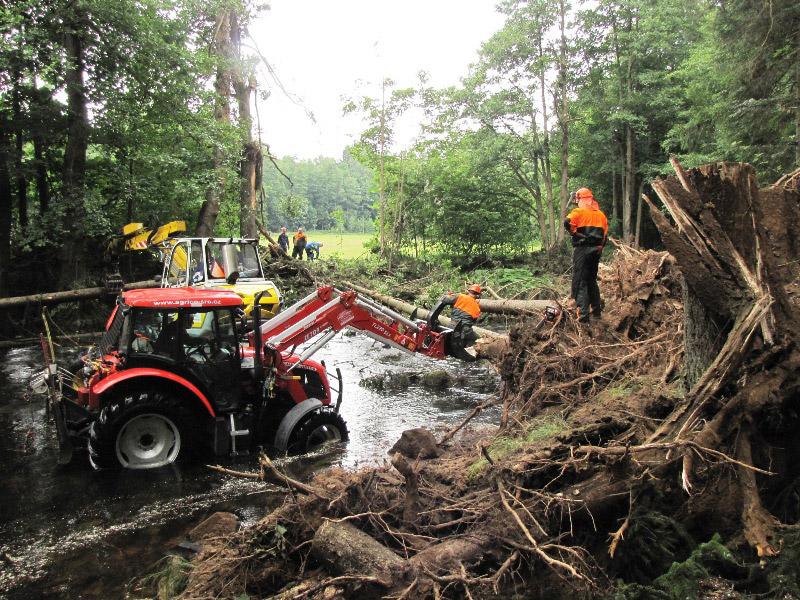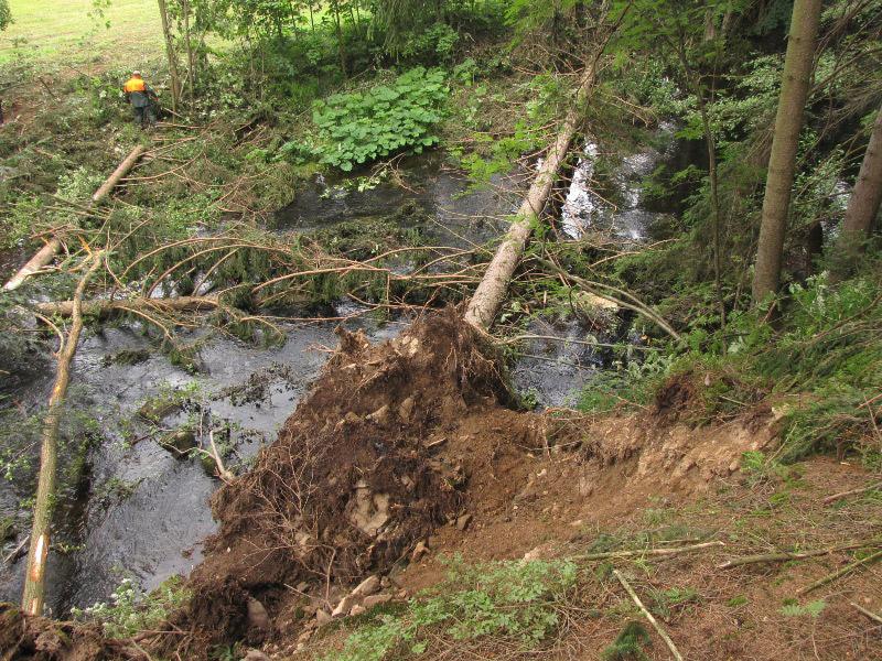 Od pondělí 13. července začali pracovníci Povodí Labe odstraňovat stromy spadlé do koryta Divoké Orlice a porážet poškozené břehové stromy. A i v obecních lesích začalo odstraňování stromů spadaných přes cestu kolem Malé přehrady, po které vede cyklotrasa i turistická stezka. Bude to však trvat ještě hodně dlouho.....