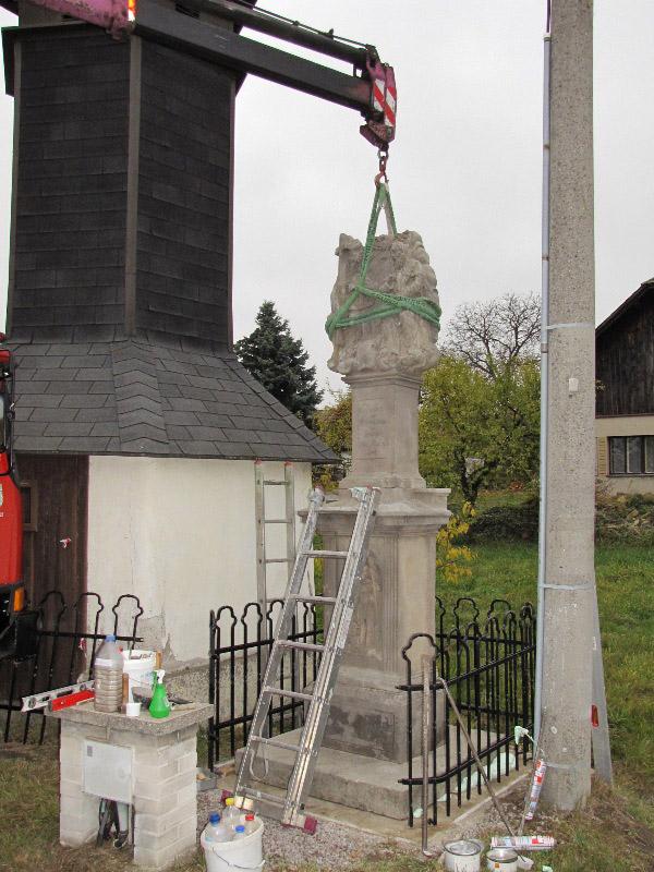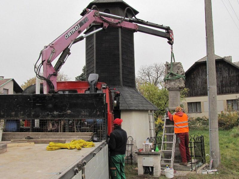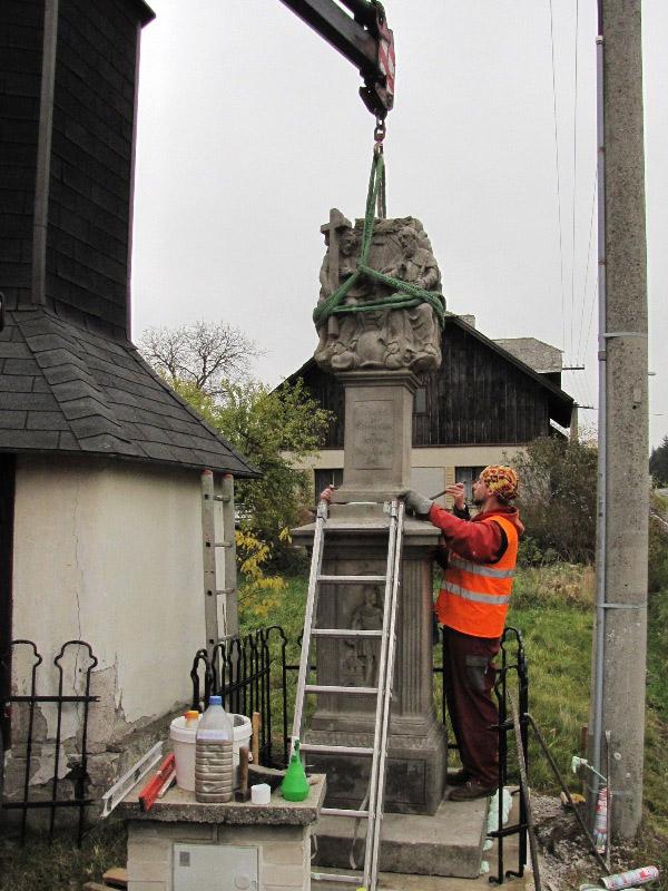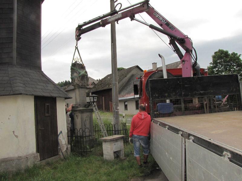 Památkou, která letos změnila svůj vzhled, byla socha Nejsv. Trojice na Bredůvce. Zde si dovolím uvést malou kuriozitu. Asi měsíc poté, co byla celá rozebrána a restaurátory odvezena do jejich ateliéru k opravě a konzervaci, se ozval telefon, že na Bredůvce asi došlo ke zločinu – odcizení sochy od zvoničky. Uklidnilo jej, že „odcizení“ provedli restaurátoři. A na pár fotografiích ukazujeme, jak „zloději“ sochu odvážejí i vracejí opravenou zpět. Na tuto opravu jsme čerpali dotaci 50.000,- z grantu Program podpory stavební obnovy a restaurování kulturních památek a drobných objektů památkového charakteru v Pardubickém kraji...