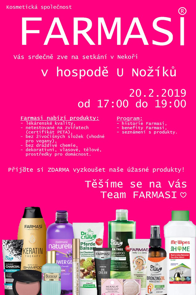 přednášku o kosmetice FARMASI 20.2. 2019 od 17 hodin v restaraci KD